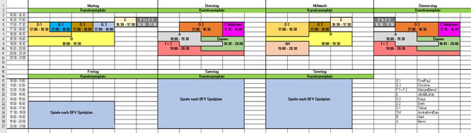 Trainings und Spielzeiten